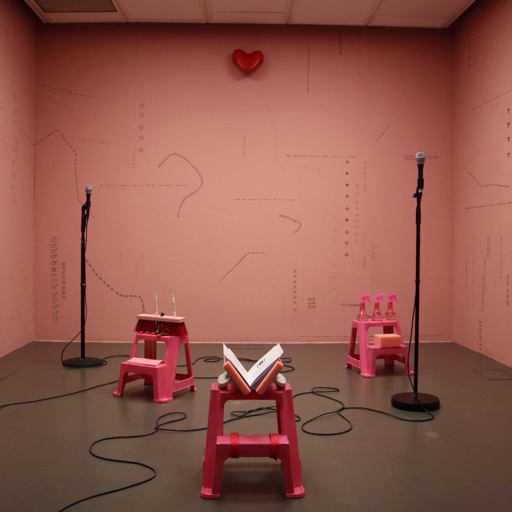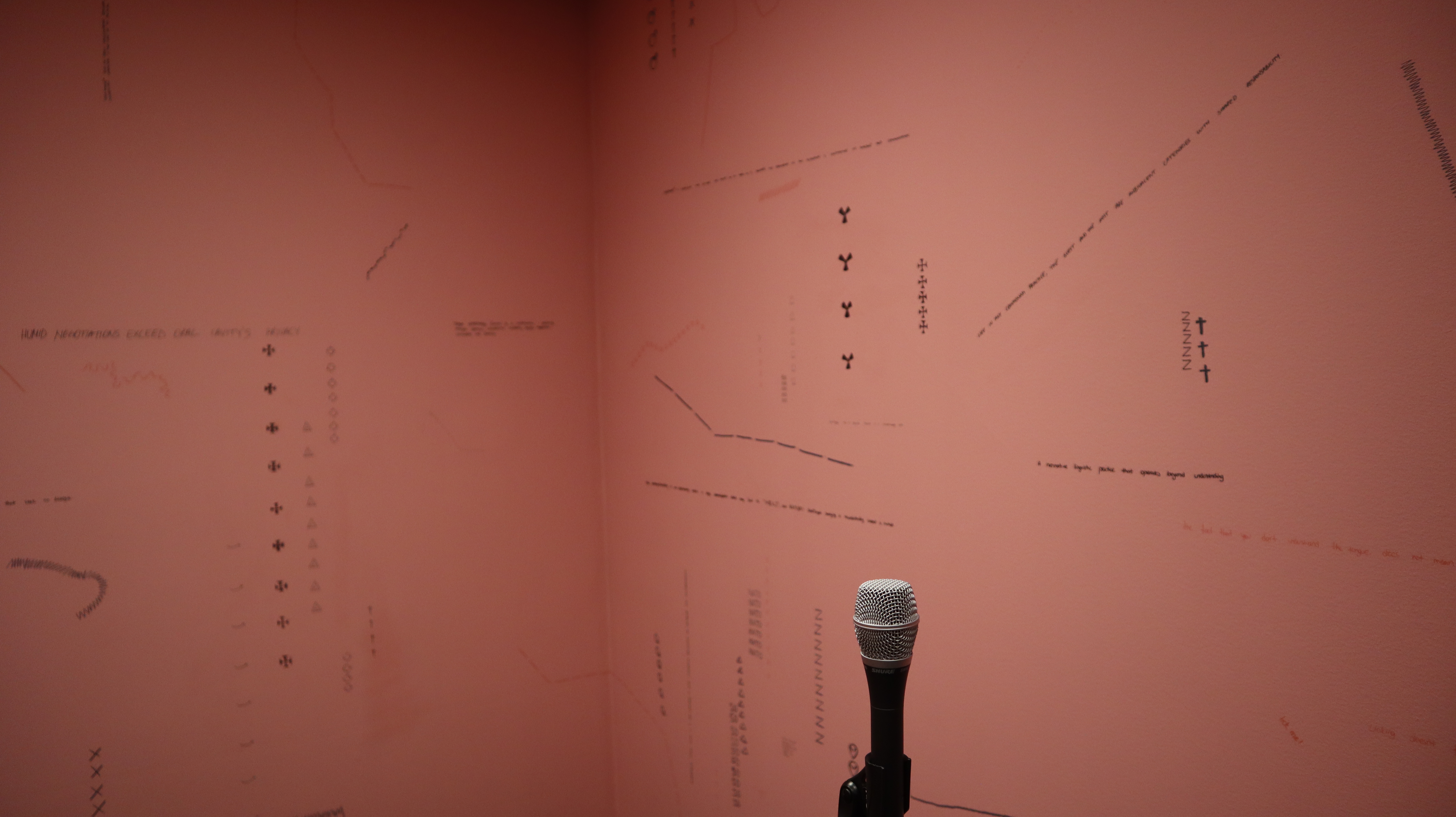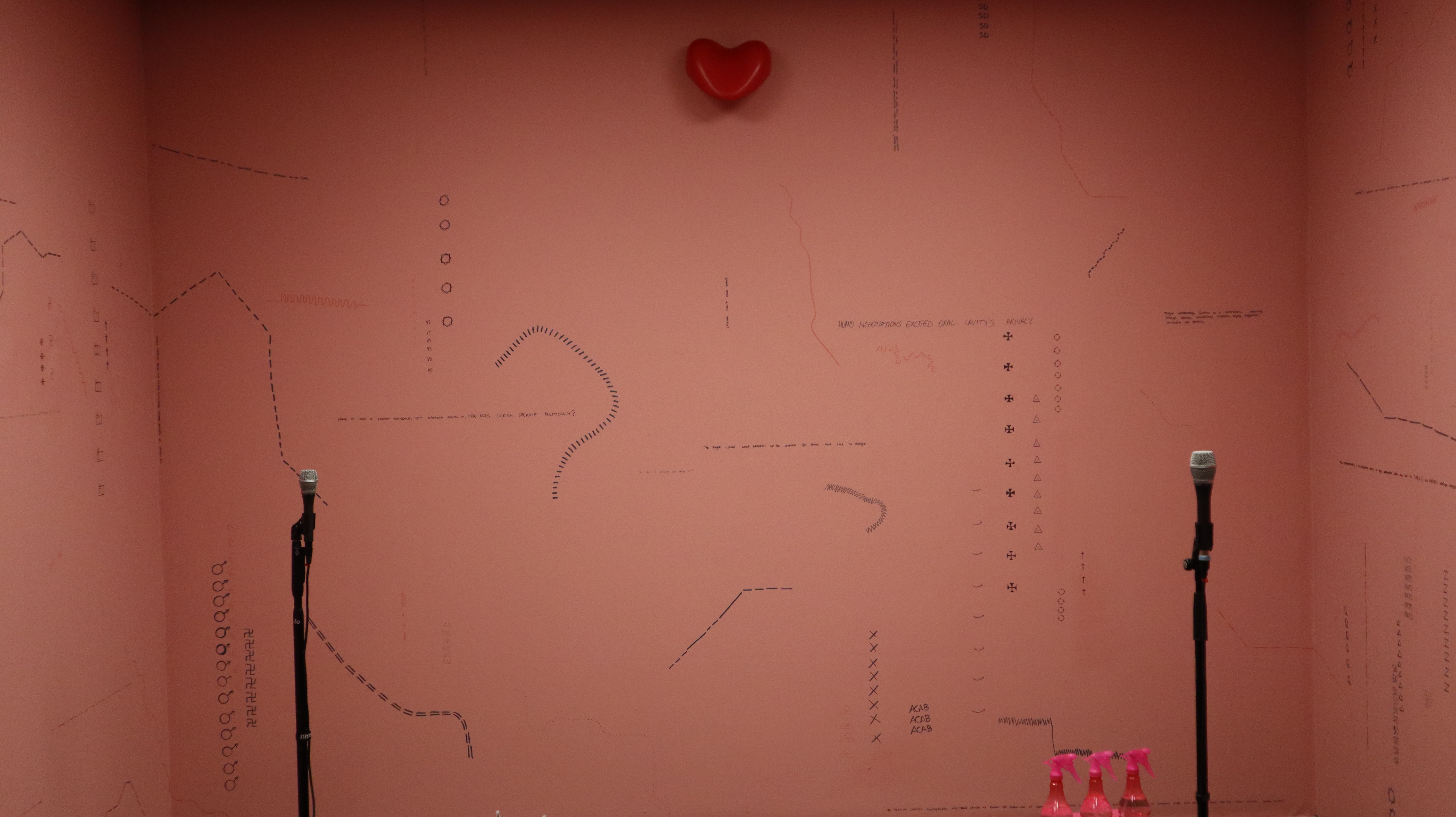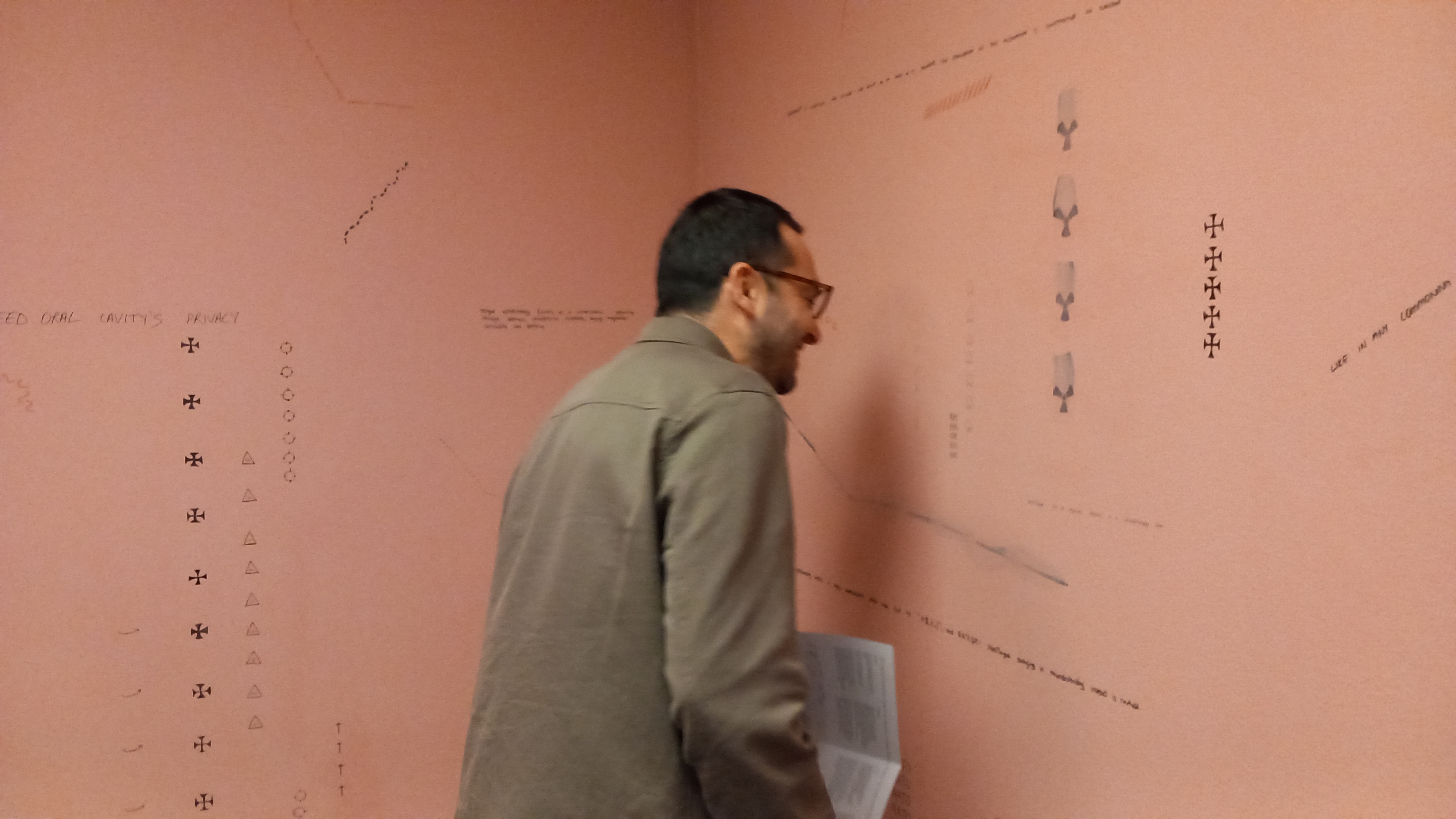 Just like an operatic libretto isn’t a document to be studied but a text to be read while singing, the pink room isn’t an exhibition to be seen but a wall to be licked while chanting.