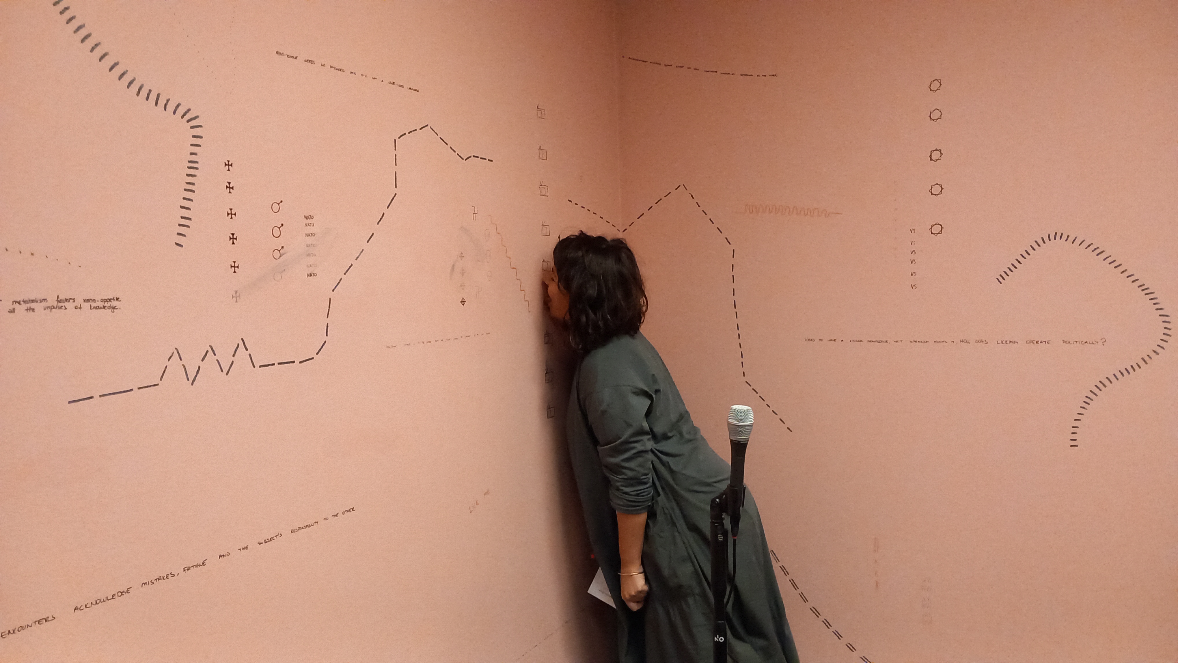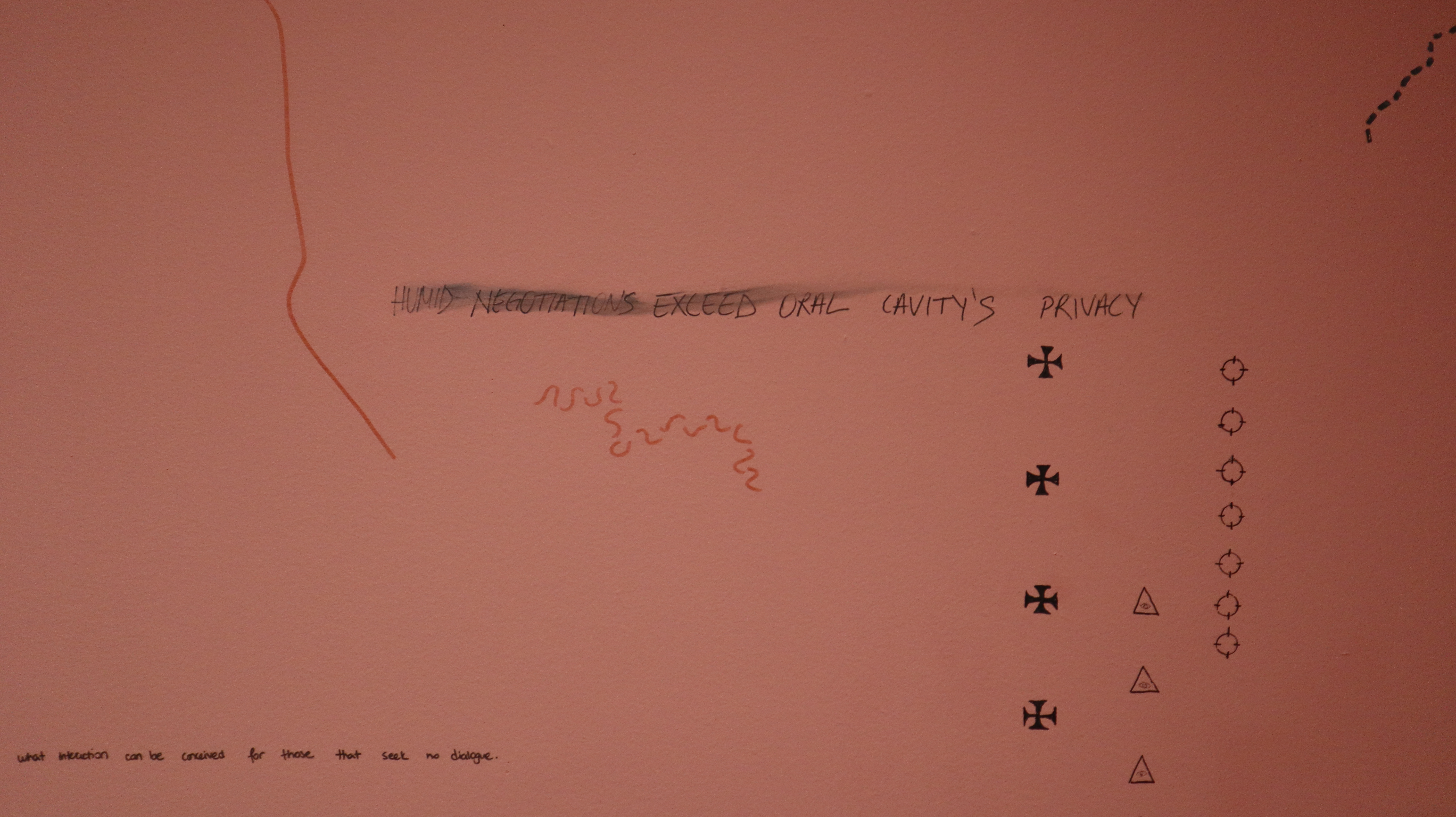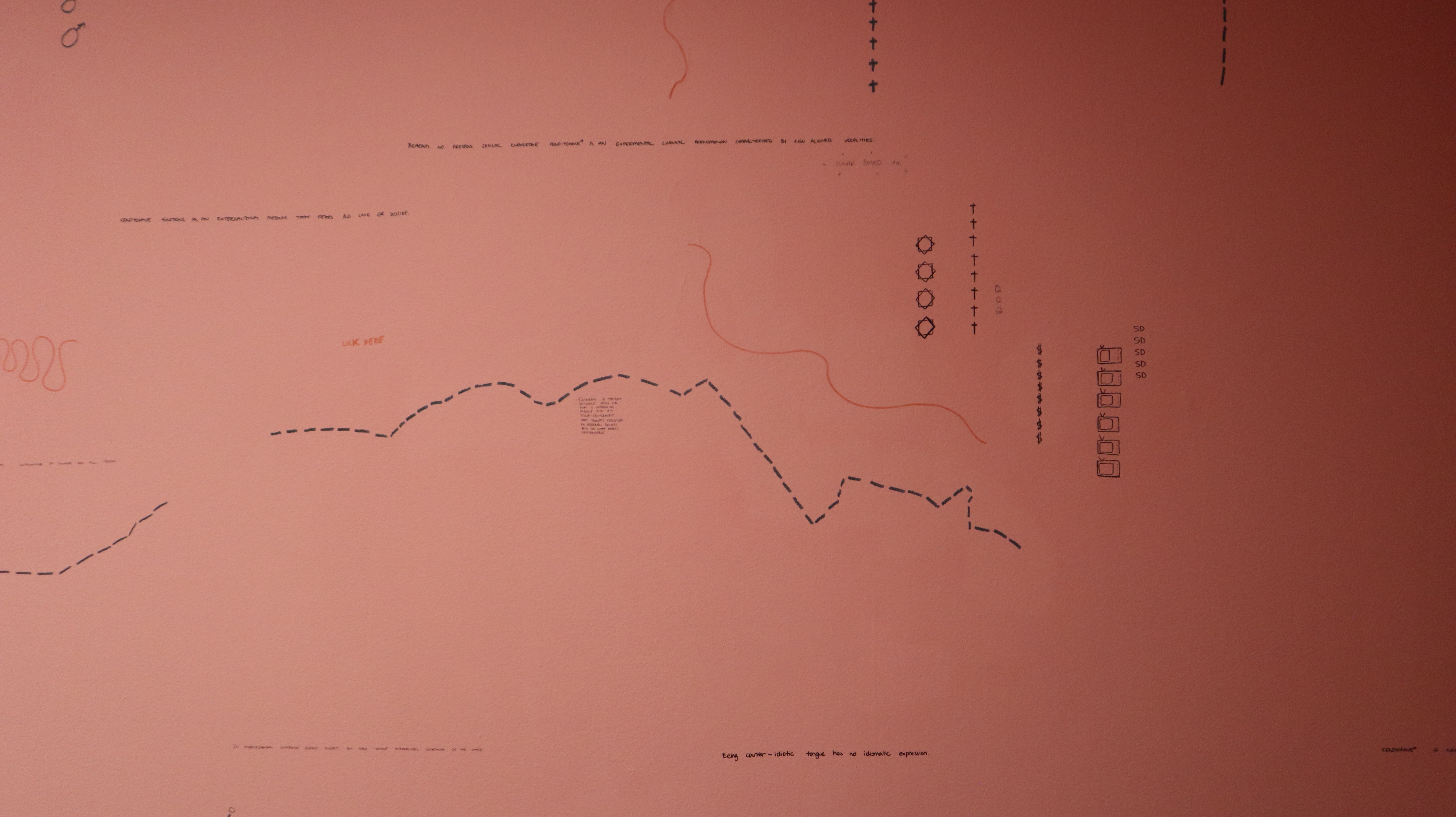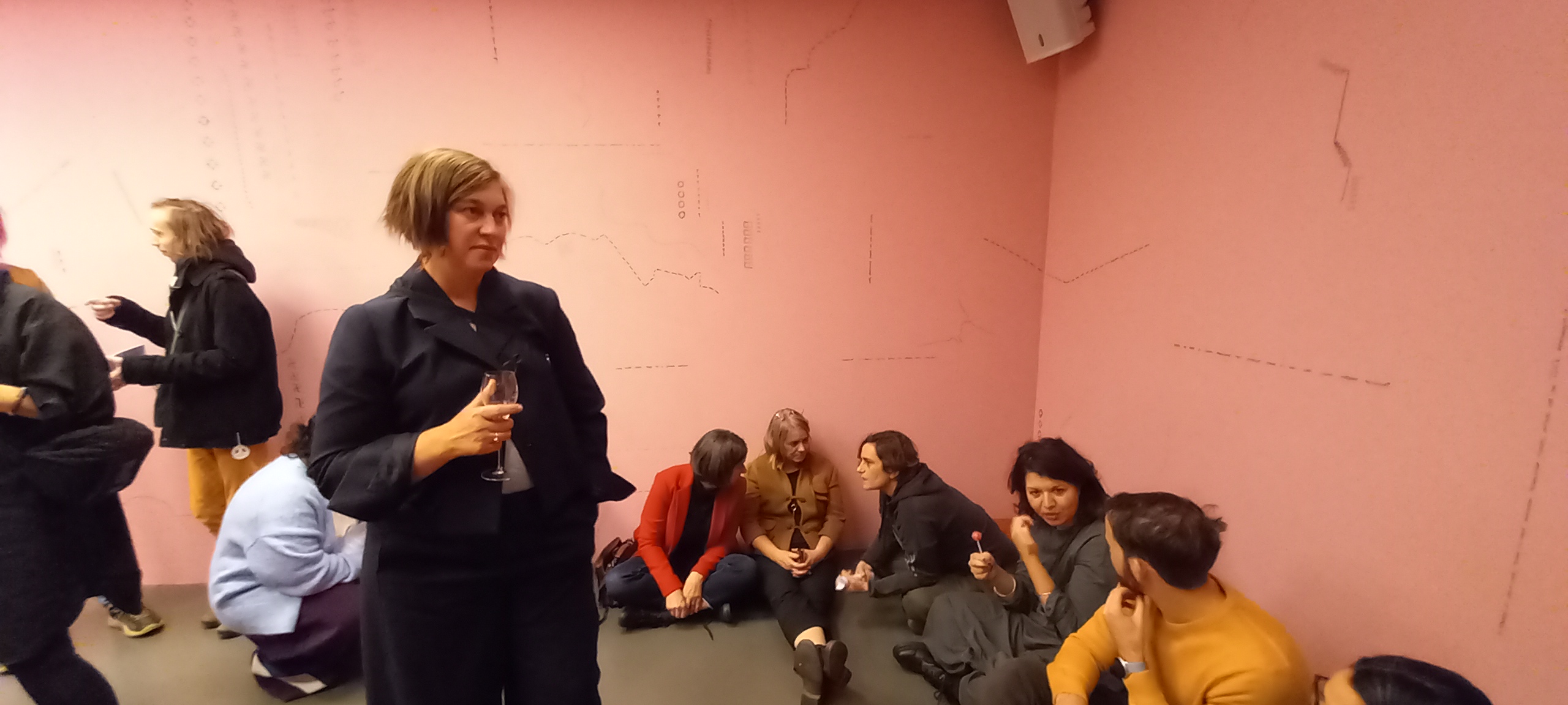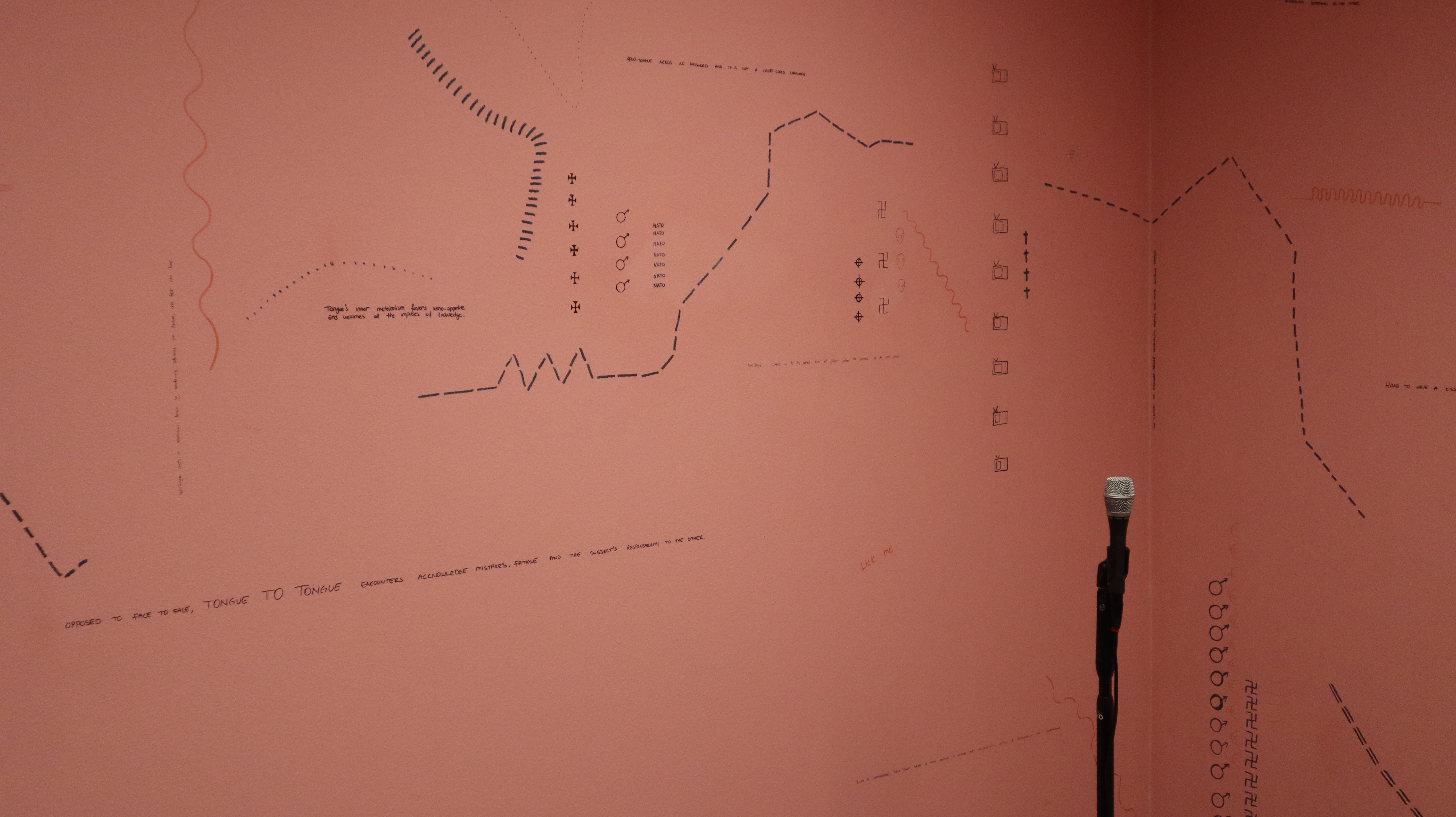 Just like an operatic libretto isn’t a document to be studied but a text to be read while singing, the pink room isn’t an exhibition to be seen but a wall to be licked while chanting.