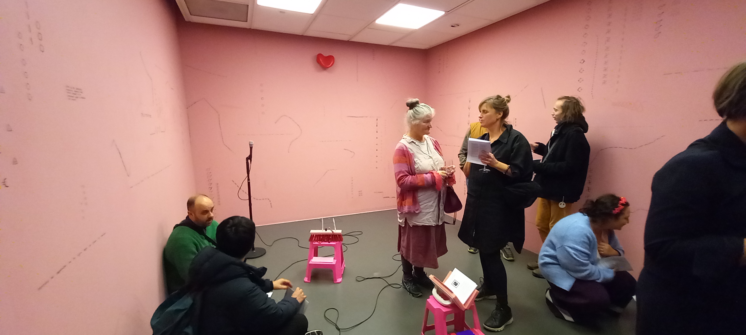 Hosted and co-produced by the Norrland Opera House, the interactive installation is conceived as a libretto room for a polyphonic noise opera through collective licking.