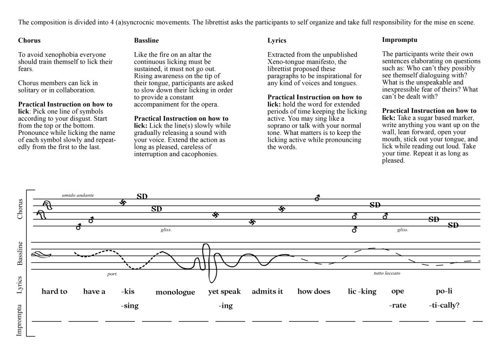From micro to macro scale, we conceive this project as a transnational pacifist campaign expressing itself into a meta-Opera composed of diphthongs, hiatuses, grammar interstitium and peculiar vocal expressions.