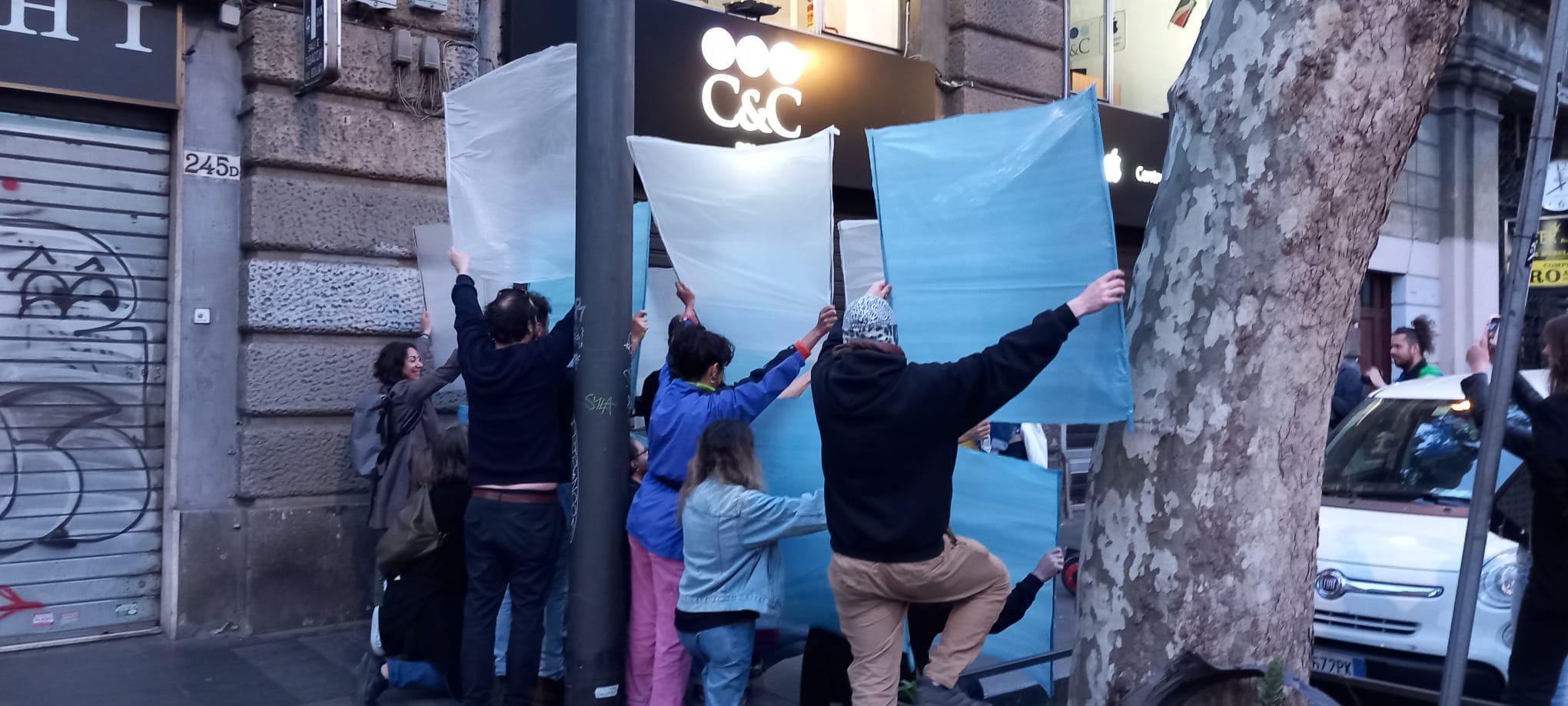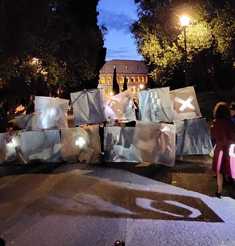 This sign connected to the most radical of the oppositions, NO to everything, including wars, is the point of departure for our work.